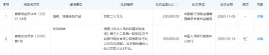 具体来看,贵阳分行曾在2020年时有过两张罚单。在2020年6月16日,该行因“反洗钱类”违法事实被中国人民银行贵阳中心支行处以40万元罚款。另对相关责任人处以罚款共计2万元。