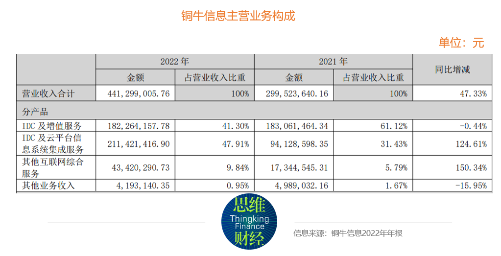 根据其2022年年报,铜牛信息的主营业务构成如下表所示。