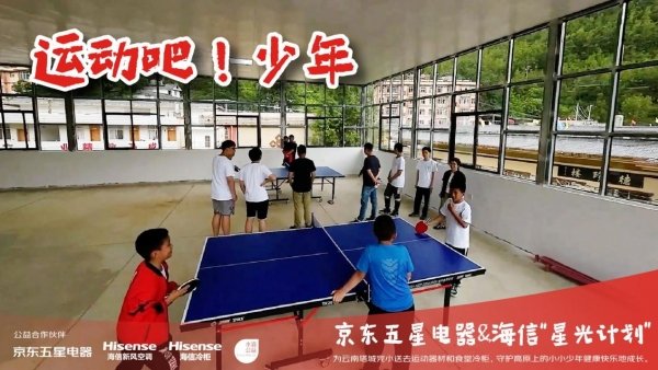 向风奔跑,与梦同行,8月初,位于云南省迪庆藏族自治州维西傈僳族自治县塔城镇塔城中心完小的孩子们挥舞着新球拍,兴奋地向镜头打招呼,他们梦寐以求的乒乓球教室终于在今天启用。本次,海信空调联合京东五星电器“星光计划”公益项目走进高原上的云南塔城中心完小,共同参与“水滴公益”乡村校园改造计划,送去乒乓球桌、球拍等运动器材。为给孩子们浇灌梦想种子、守护幼苗健康成长,乒乓球运动员、奥运冠军、海信空调代言人陈梦为孩子们特意准备了视频祝福和签名球拍,这一举动让孩子们无比惊喜。