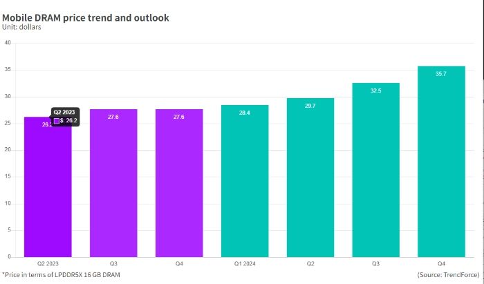 行业观察人士指出,自2022年底开始,由于芯片行业大幅度减产,智能手机制造商的芯片库存水平已经下降。在上游市场,由于近期智能手机新品发布的热潮,LPDDR5X等DRAM芯片的价格逐渐上涨。