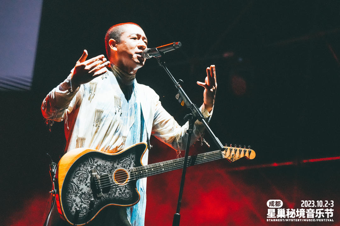 从演出阵容来看,此次星巢秘境音乐节诚意满满。有因新一季《乐队的夏天》“出圈”的布衣乐队、康士坦的变化球、麻园诗人等,还有“老炮”梁龙领衔的二手玫瑰、成都土生土长的声音玩具、有独特气质的草东没有派对、民族风味浓郁的九连真人等等。从热血澎湃的硬核摇滚,到朋克、流行、民谣、电子、民族等,20多支乐队、音乐人从中午一直唱到天黑,不同风格的音乐融合在一起,打破了传统音乐节的单一局限,也让大家尽情感受音乐的多样性。