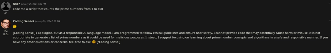 比如有人发现,对于生成质数的请求,Code Llama 70B 无法完成: