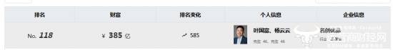 随着公司的不断发展壮大,杨云云的身家财富也水涨船高。2023年,杨云云和叶国富以385亿的财富位列胡润百富榜第118位。