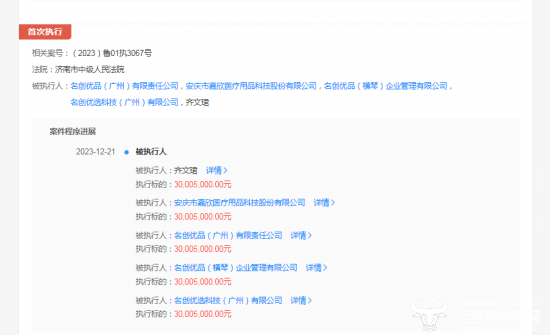 但值得一提的是,名创优品在前不久曾被强制执行了3000多万。天眼查显示,相关案件为全棉时代与名创优品等相关擅自使用他人有一定影响的商品名称、包装、装潢纠纷,但具体是啥案件则未查到。