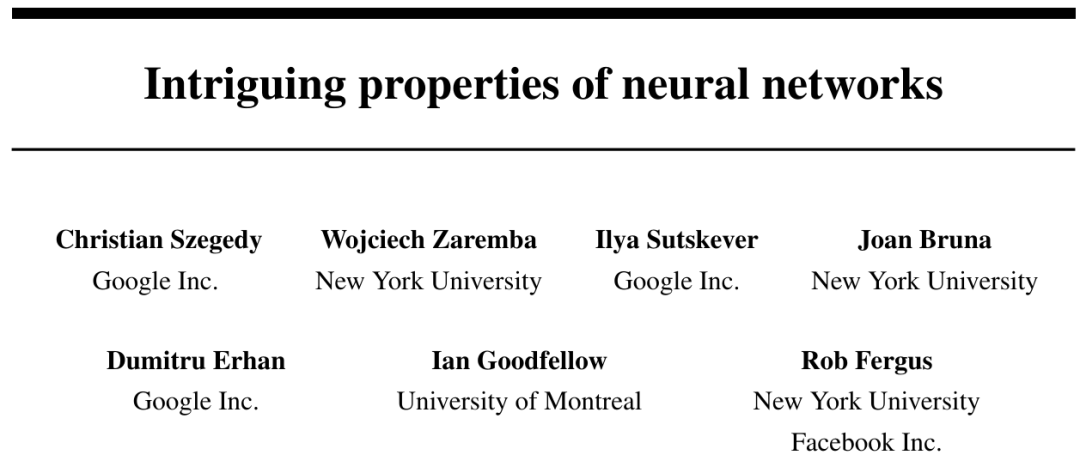作者:Christian Szegedy、Wojciech Zaremba、Ilya Sutskever、Joan Bruna、Dumitru Erhan、Ian Goodfellow 、 Rob Fergus