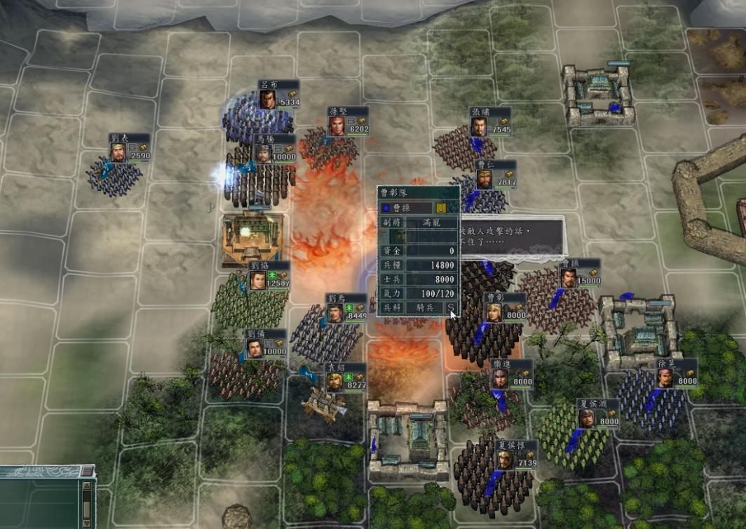 定军山之战,卡好山路逐一击破在前几个剧本中,按演义设计的剧情杀比比皆是,稍微动动脑子就能取胜,我只管享受剧情触发时的那种爽快感。赤壁之战和夷陵之战,我扮演的东吴都有触发火计的手段;官渡之战里,曹操只要坚定守住,代表“乌巢”的建筑自己就会刷新。
