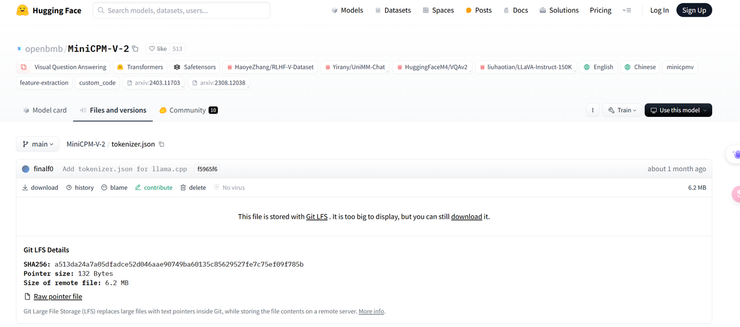但事实是,据 AI 科技评论向面壁团队了解,MiniCPM-V-2 的 tokenizer 与 MinicPM-Llama3-V2.5 完全不同,在Huggingface 里是两个文件,「既不是同一个 tokenizer 件,文件大小也完全不同」。