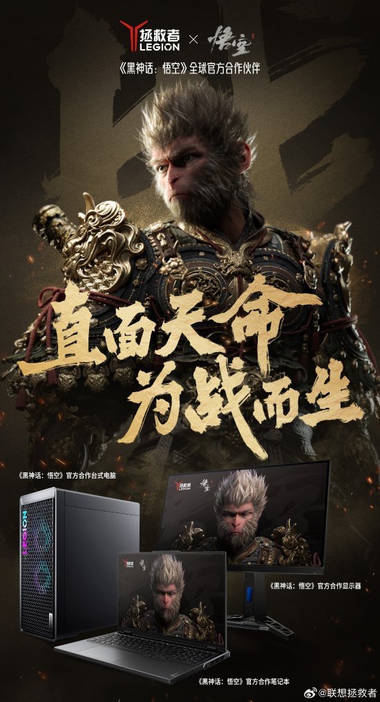 昨日,联想拯救者官宣成为《黑神话:悟空》的全球官方合作伙伴,拯救者系列电脑已全面支持《黑神话:悟空》的测试与调优。