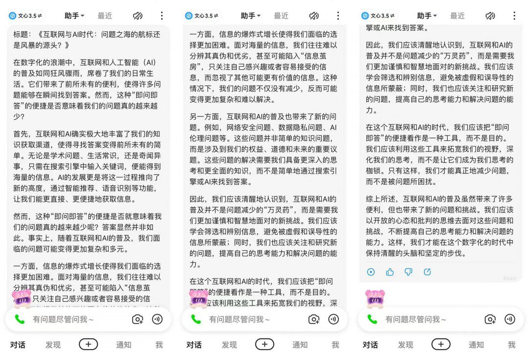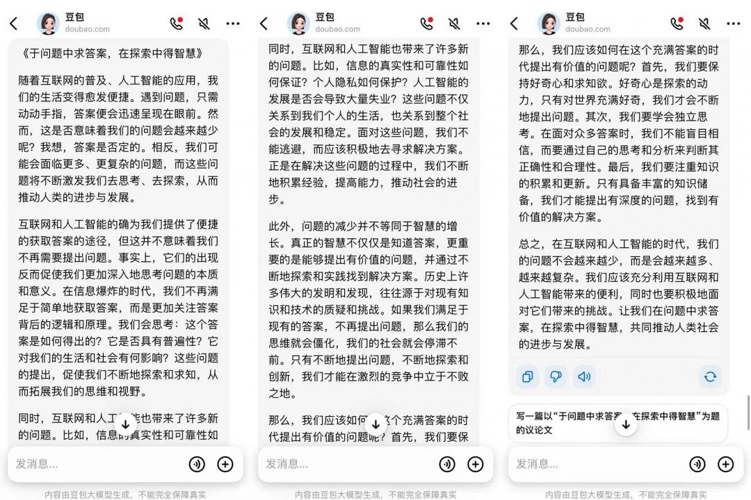 今天,我们就用百度文心一言、阿里通义、腾讯元宝、字节豆包、360智脑,再加ChatGPT,6大神器来写2024年高考作文,让大家再看看各家今年的表现如何。