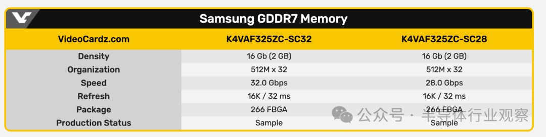 三星和SK海力士在今年3月份NVIDIA的GTC大会上均宣布了各家GDDR7的相关指标。两家公司都展示了16Gb(2GB)密度的产品,24Gb(3GB)更高版本没有在这一波浪潮中展现。