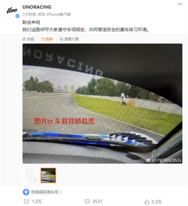 王一博工作室转发,并表示:擅闯车场禁止区域不仅给所有车手带来未知风险,更是对自己生命的不负责任!