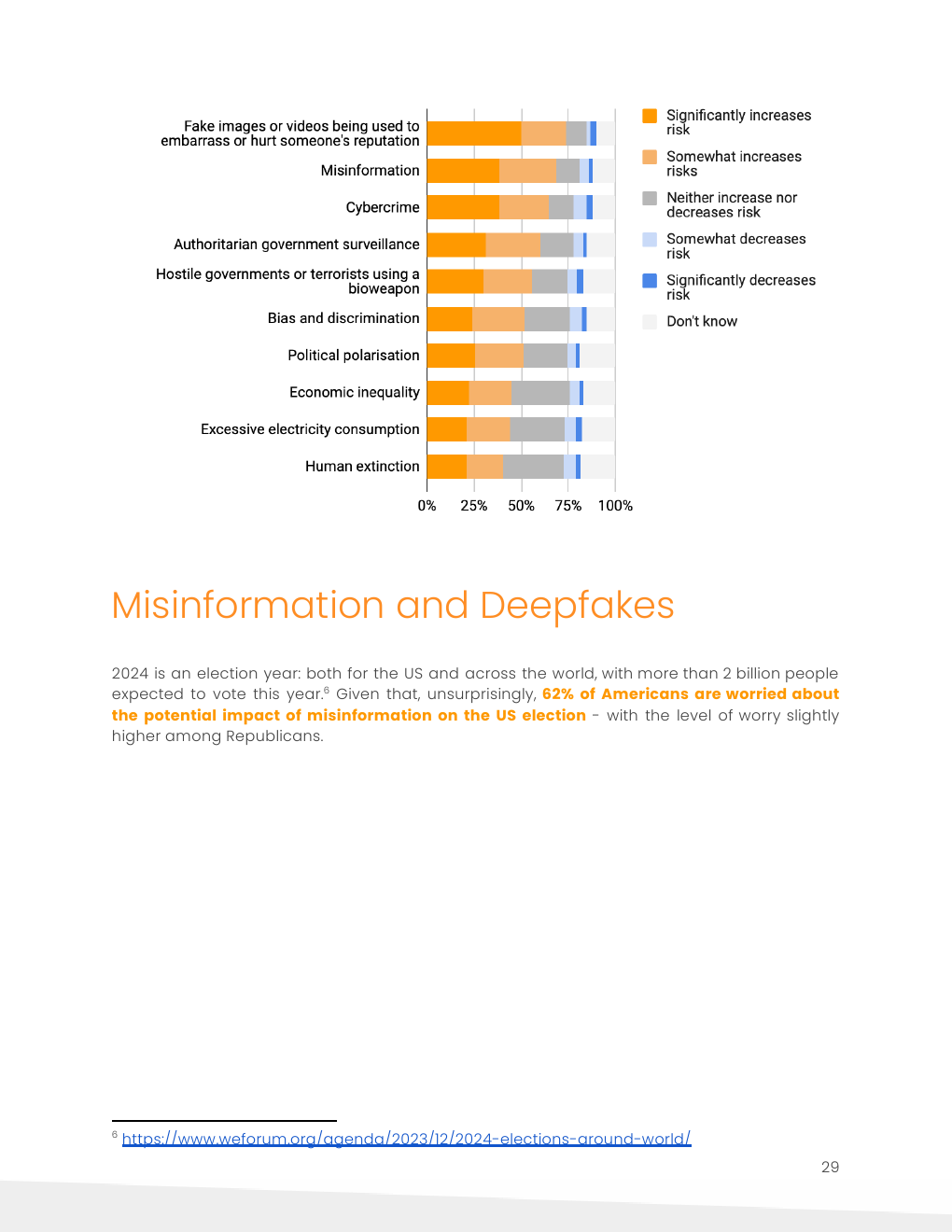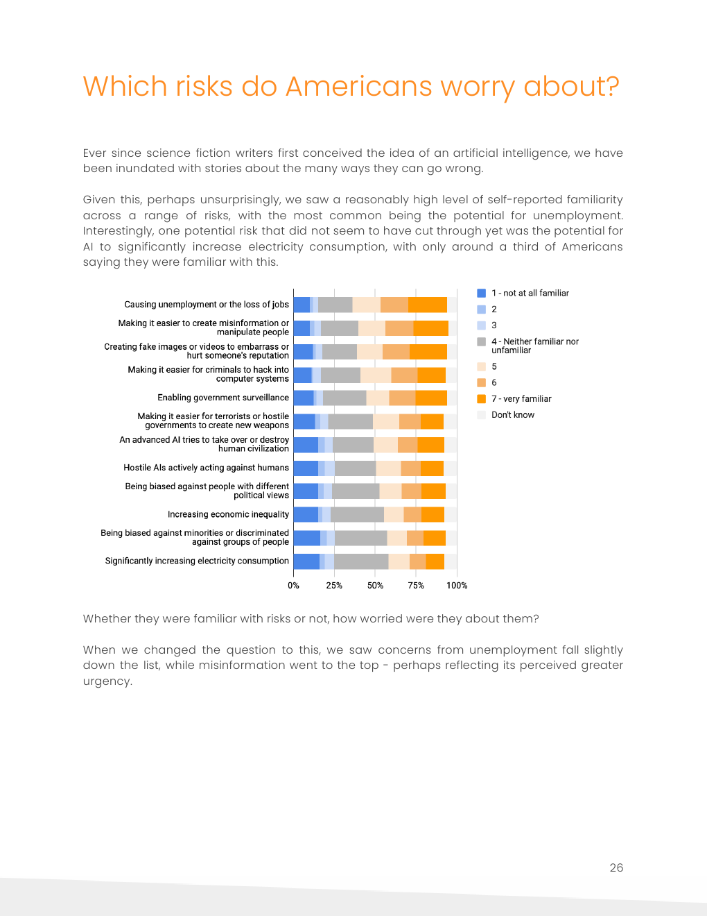虽然人工智能可能导致失业是美国人最熟悉的风险,但错误信息是他们目前最担心的风险。