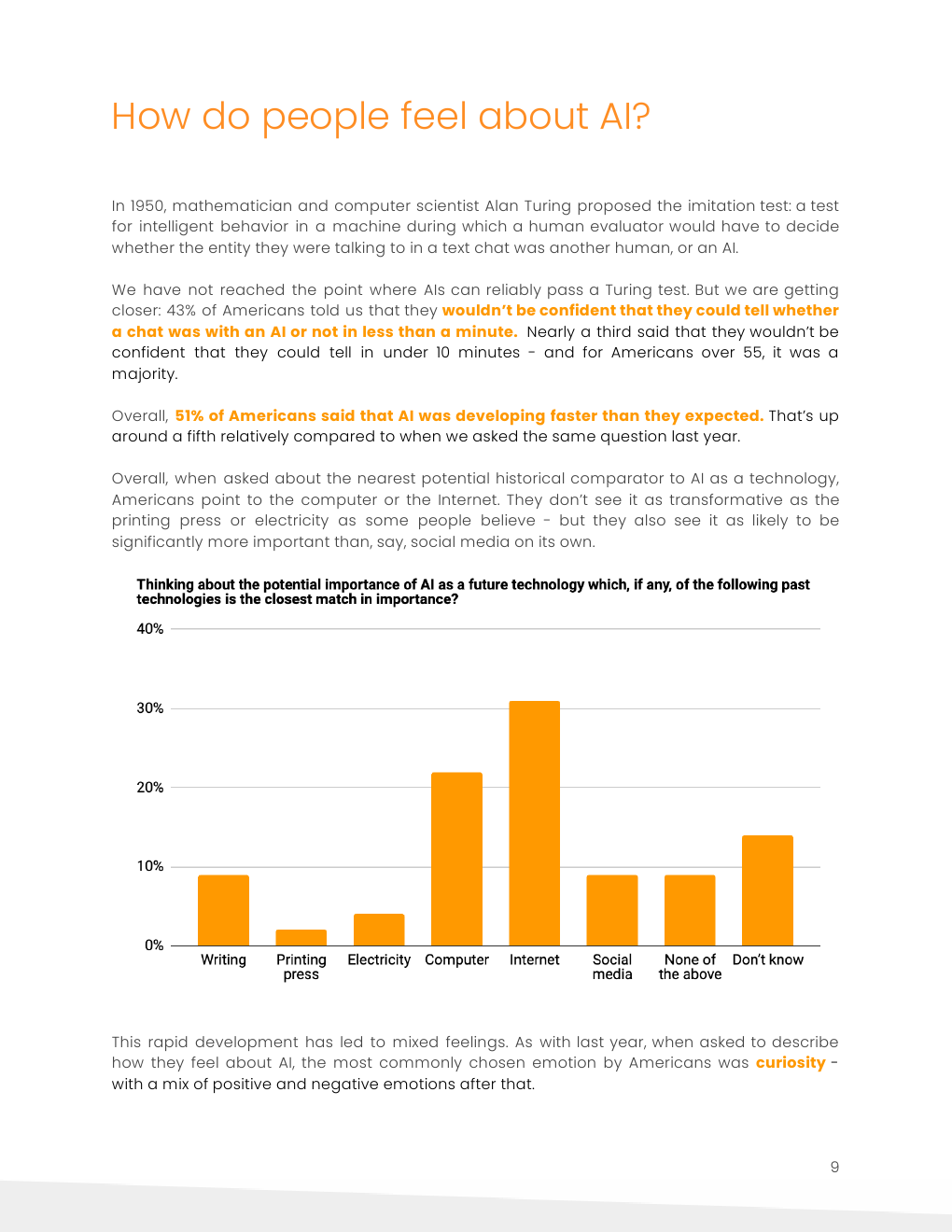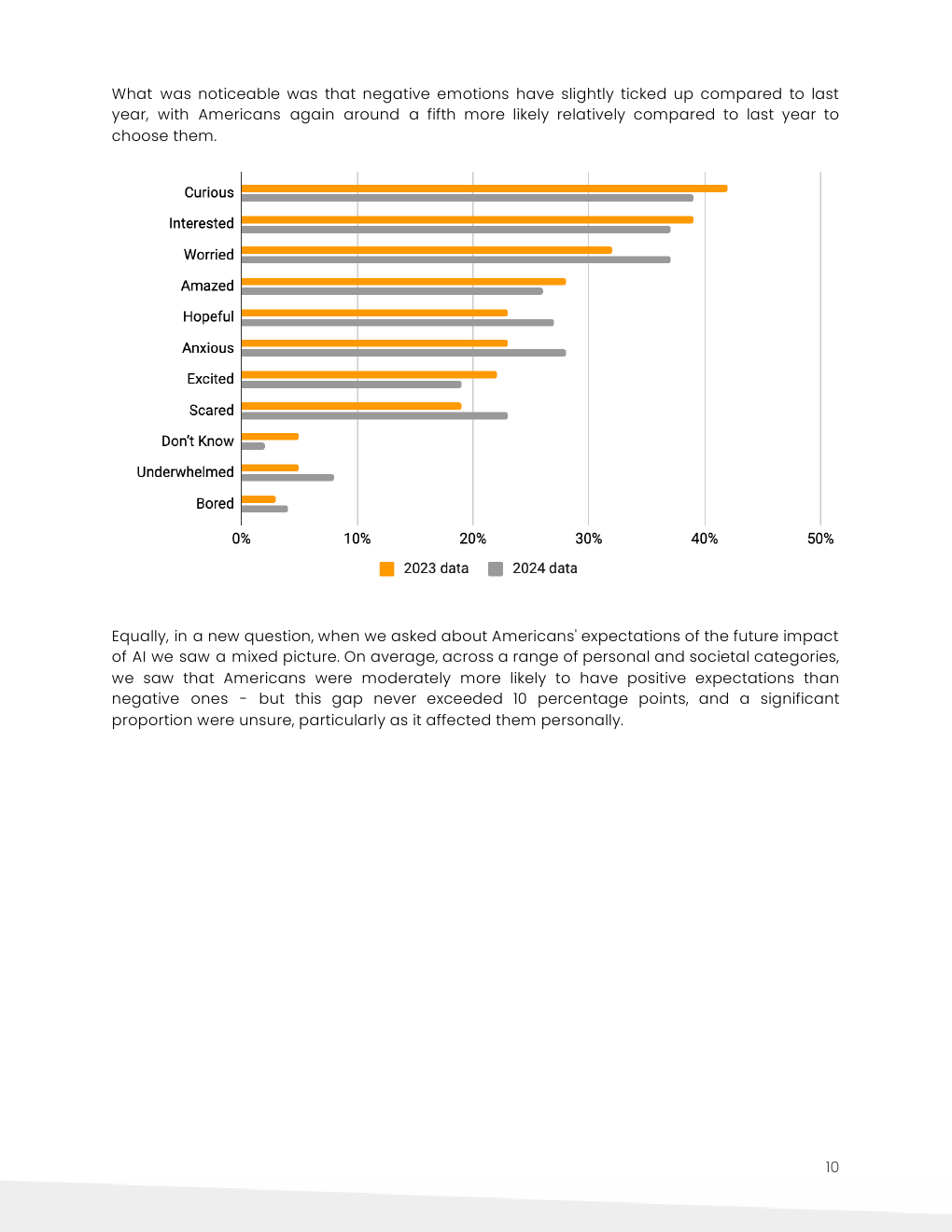美国人对人工智能最常选择的情绪是好奇,但与去年相比,今年选择负面情绪的可能性也增长了约1/5。