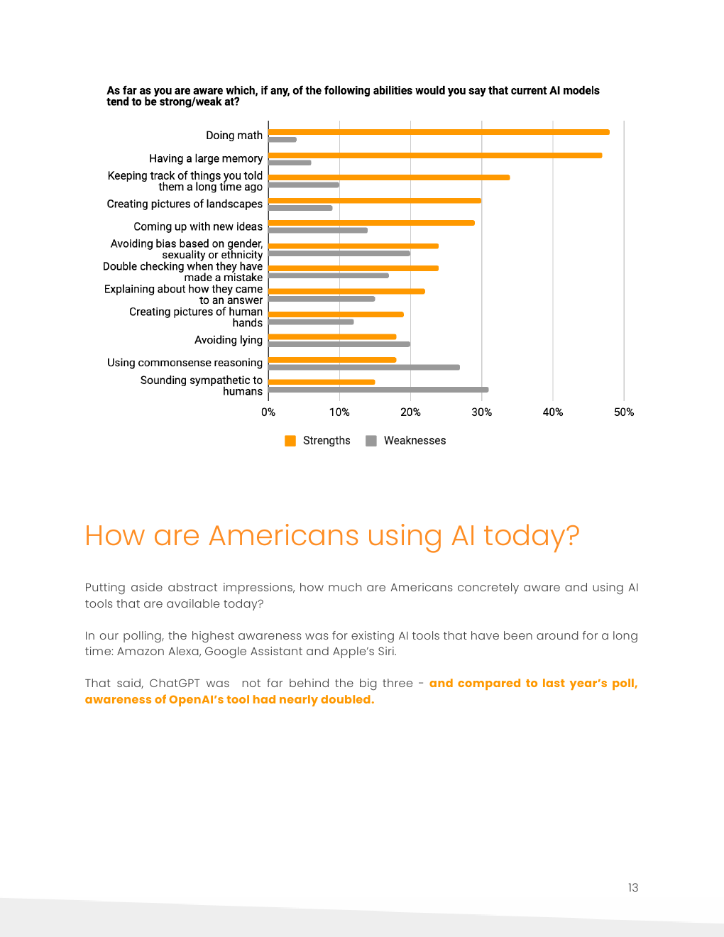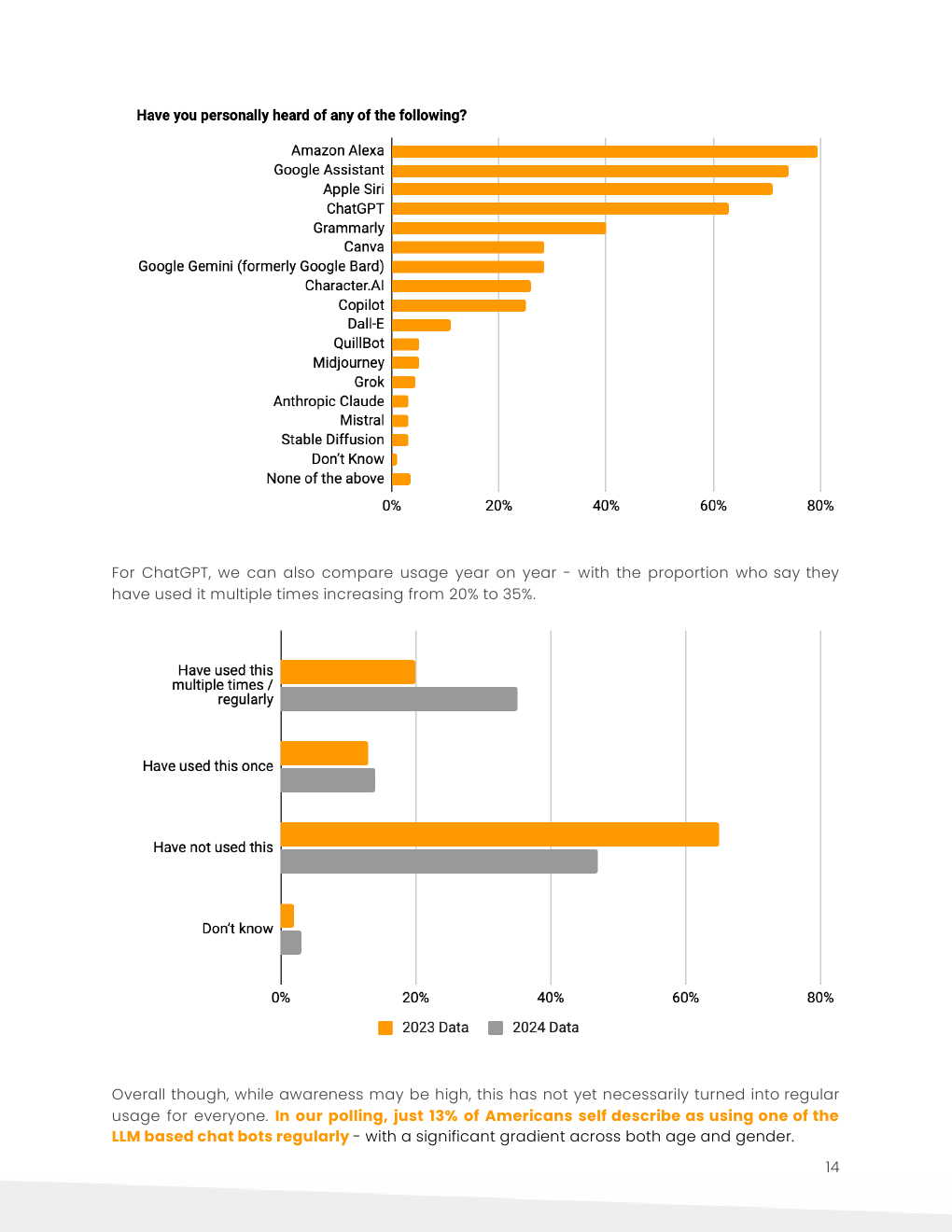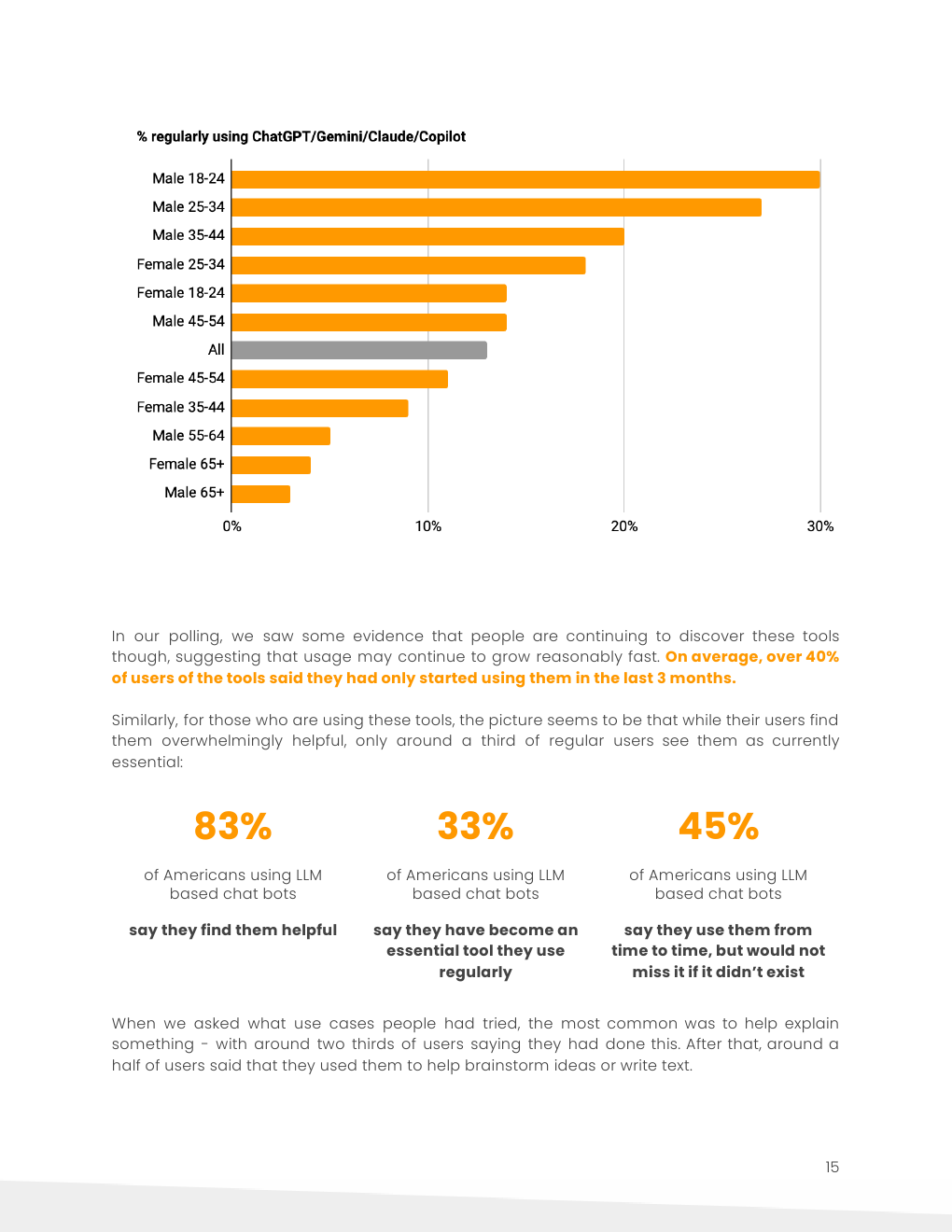 目前只有13%的美国人定期使用基于LLM的聊天机器人。