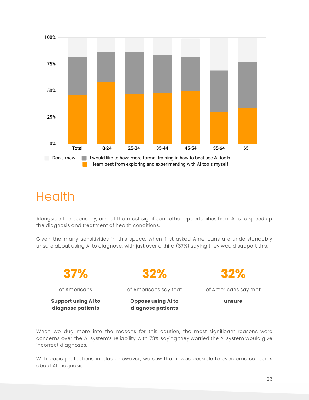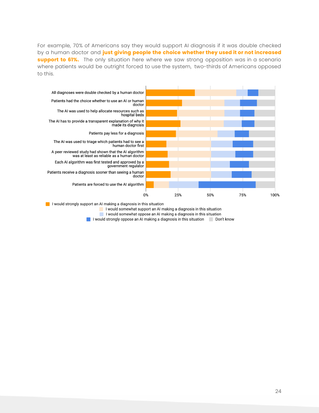 61%的美国人表示,只要人们有选择的余地,他们会支持人工智能诊断;2/3的人表示,如果强迫人们进行人工智能诊断,他们会反对。