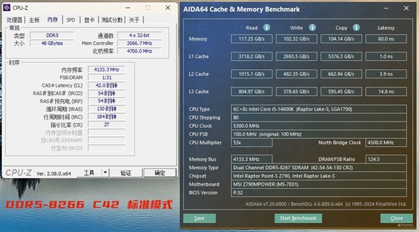 最后,我们还试着挑战极限,看看这款内存的频率能否更进一步,实测8266MHz也能成功,并且读取不负众望,冲到了117.25 GB/s,延迟也仅有60ns。不得不说这款内存的可玩性还是相当高的,非常适合极客玩家“折腾”!