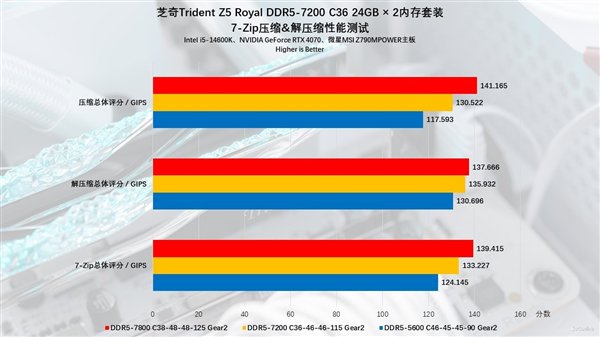 理论测试部分,首先用7Zip的数据压缩与解压缩项目对芝奇Trident Z5 Royal DDR5内存进行测试。