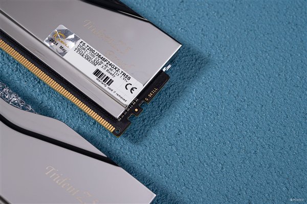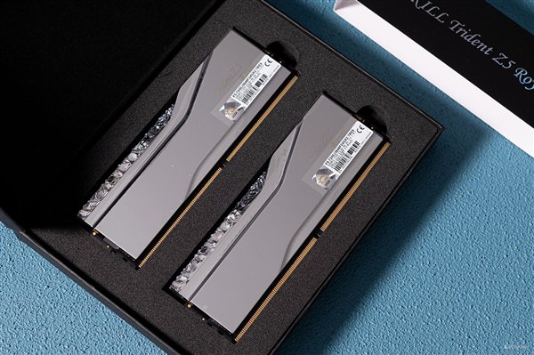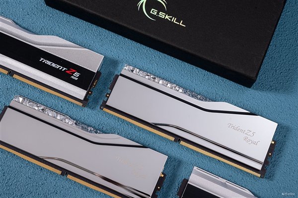 揭开布,闪耀着光芒的主角就登场了。即使躺在海绵的包裹之中,依然挡不住那贵族气息扑面而来。我们拿到的是银色版本的芝奇Trident Z5 Royal DDR5内存,另外还有金色的版本,更显尊贵奢华。