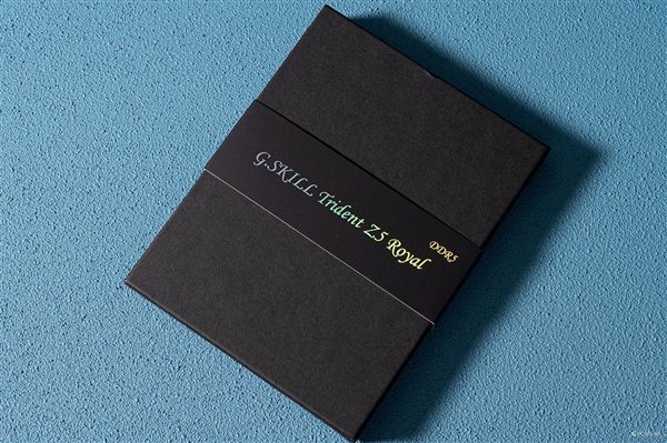 芝奇Trident Z5 Royal DDR5内存的外包装还是熟悉的味道,包装盒是一个黑色的纪念盒,用一条印着幻彩字样的腰带束缚。上方印着“G.SKILL Trident Z5 Royal DDR5”,这也是芝奇皇家戟的本名。
