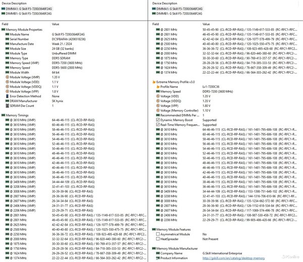 盒子的背面则印着内存的相关信息,我们这次上手的这款是最新的48GB套装,内有两条24GB的DDR5内存,XMP频率可达7200MHz,时序低至C36,表现相当不错。
