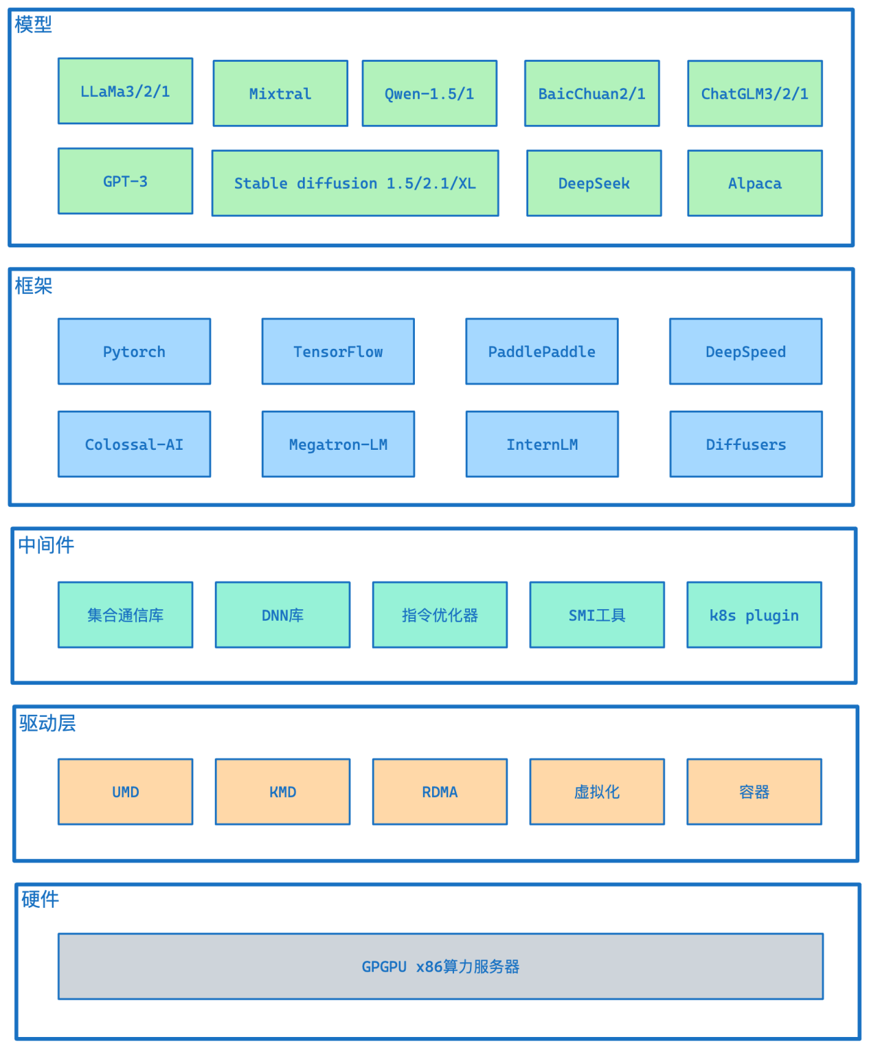 优刻得国产智算集群全面兼容CUDA等主流GPU生态软件栈,这意味着企业能够将CUDA应用零成本迁移到国产智算平台,实现快速适配。集群还提供了完善高效的软件栈工具,集成多种主流的深度学习编程框架,通过测试验证,确保了对行业领先人工智能模型的高效支持,做到开箱即用,用户可快速投入模型的开发和部署,加速了其在人工智能领域的布局和发展。
