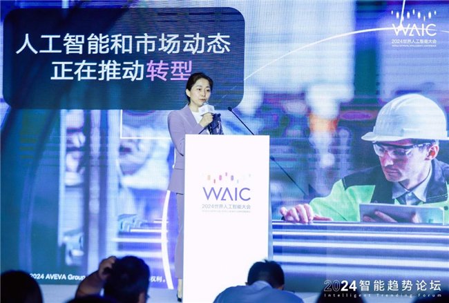 (AVEVA剑维软件副总裁,中国区总经理崔静怡女士在“WAIC 2024 智能趋势论坛”发言)