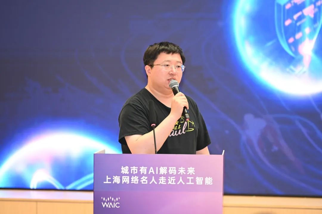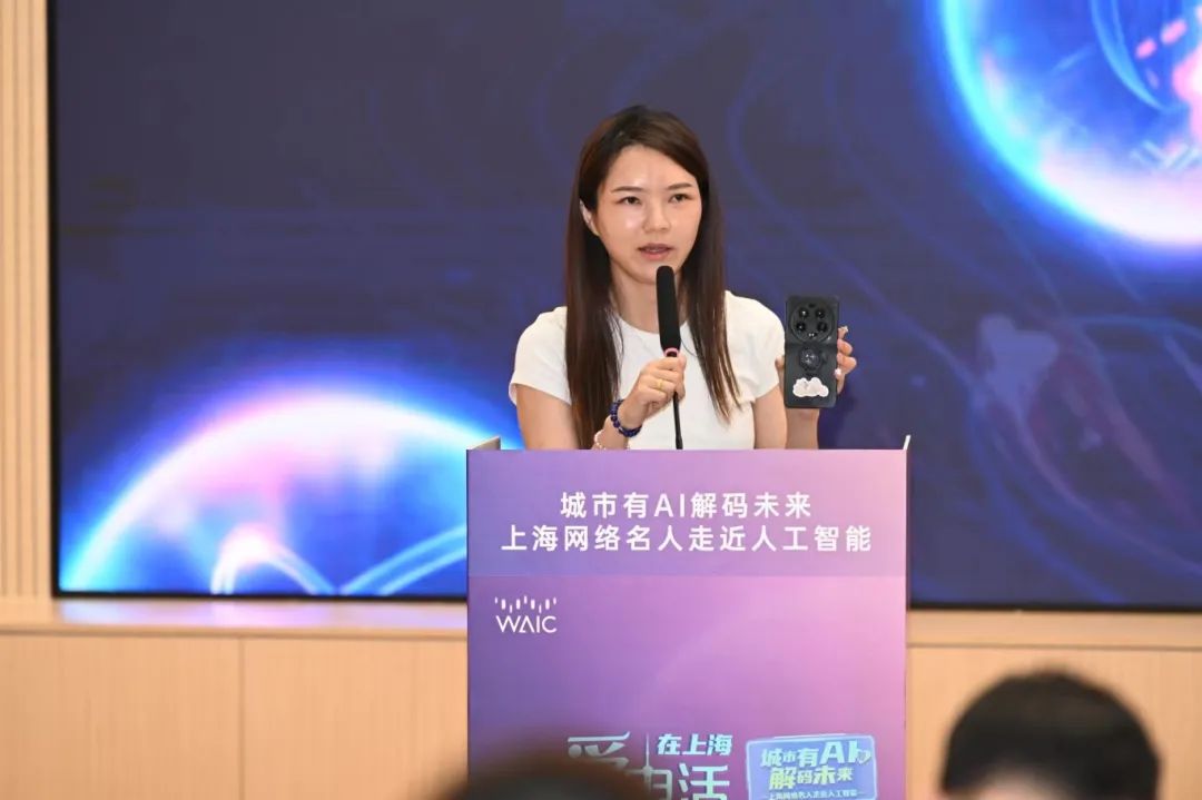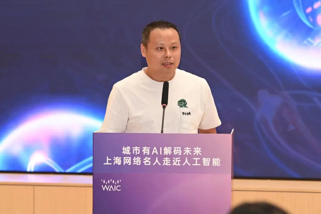 主题分享环节,网络名人们结合各自网络创作和传播经验,围绕AI产业与城市未来展开交流对话。“星船知造”账号负责人唐晓园的分享以“找到新时代城市产业故事的叙事语调”为题,指出可以从产业链和产业变革两个视角出发,寻找新的表达方式,以展示上海这座城市的独特产业气质。“图灵的猫”账号负责人王依然谈到AI科普的现状与未来,提出应该在AI的未来发展中充分发挥上海基础设施建设优势。