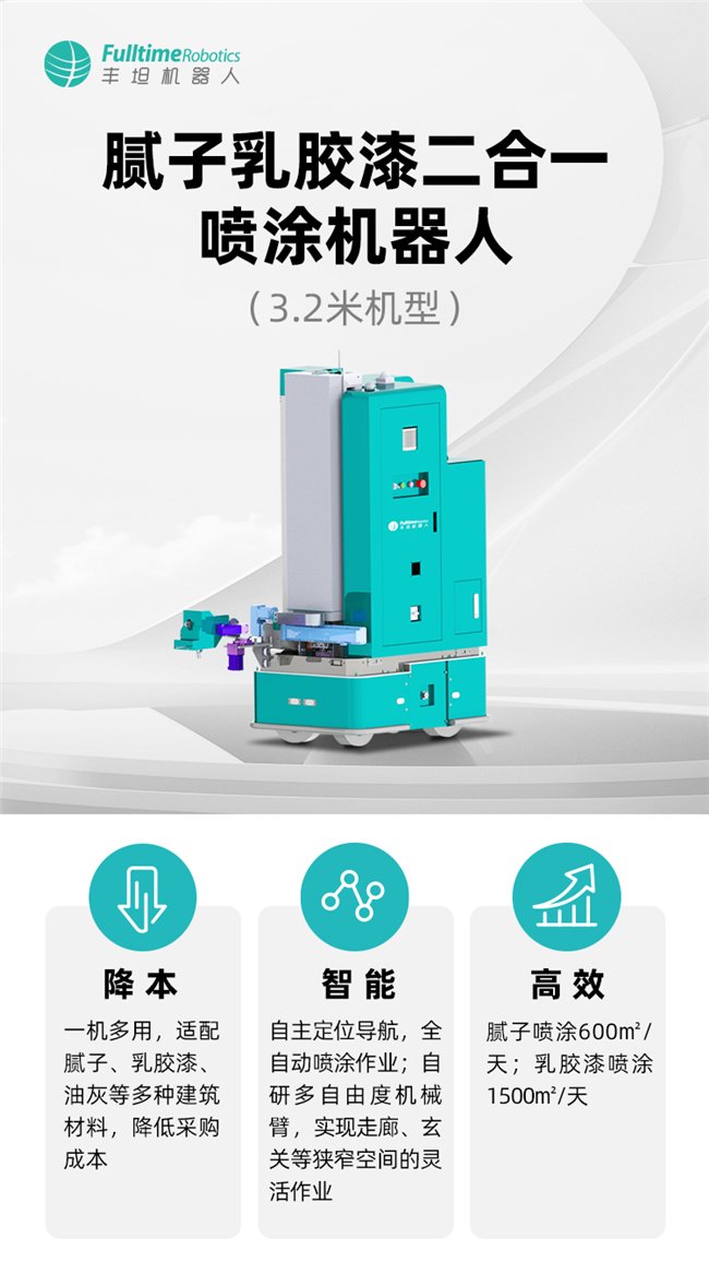 这些产品的推出,将全新升级丰坦室内涂料工程施工机器人产品矩阵,以更丰富的臂长选择、更简单便捷的操作方式、更精准的成本控制,为行业客户提供更优方案。