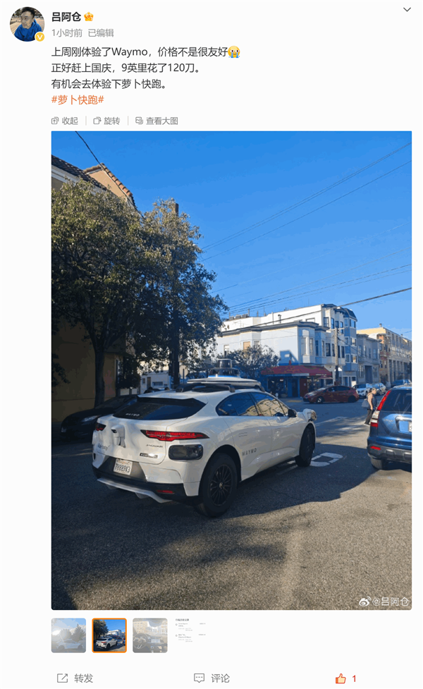 日前,有博主发文称,他上周在美国体验了一下Waymo无人驾驶出租车,但是价格不是很友好。