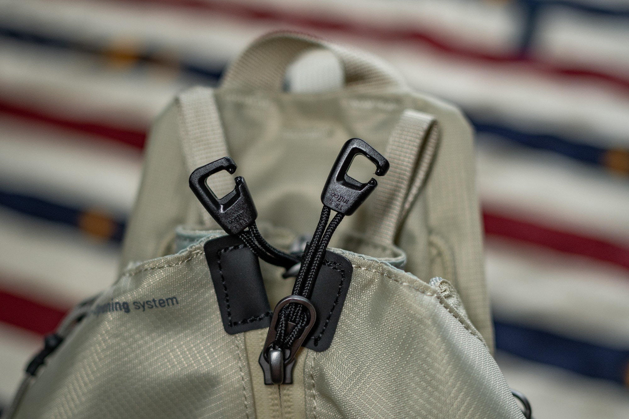 瞬合系统的操作示意瞬合系统(束绳磁吸瞬息开合结构)可以支持用户单手操作实现摄影旅行包的开合,动作很帅气的同时还可以干净利落的完成操作,这也是波奇客户外摄影旅行包的独有功能。使用时,我们只需要将磁吸扣打开,然后现开顶盖,打开拉链即可开始进行收取的操作。用完之后,将拉链拉好,然后将最下方的磁吸扣稍微用力一拽,背包的顶盖就可以瞬间折叠回到原本的位置上,然后将磁吸扣对准位置一放,就会自动吸附好。整个使用过程简单便捷,操作的体验感受非常好。