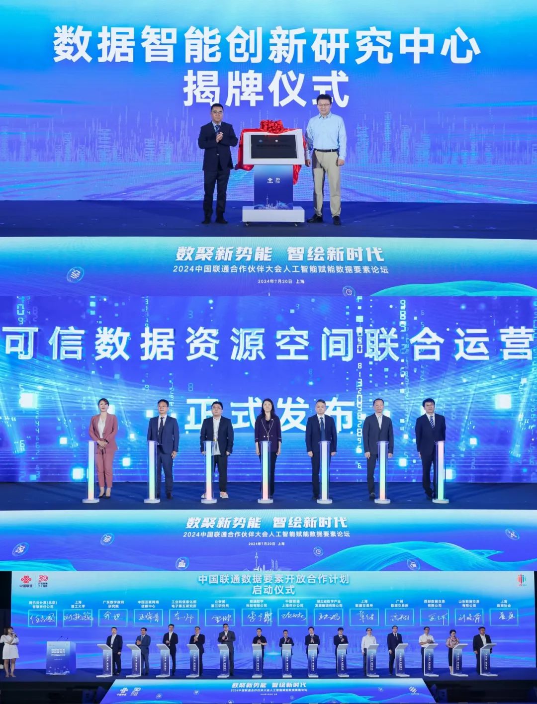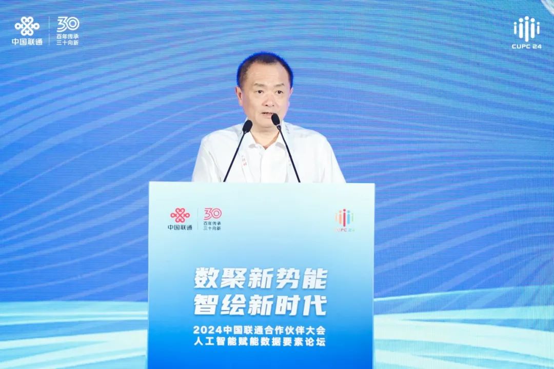 7月20日,2024中国联通合作伙伴大会“人工智能赋能数据要素论坛”成功举办。论坛以“数聚新势能 智绘新时代”为主题,围绕数据要素、人工智能领域前沿技术和应用,以及数据流通基础设施建设、数据要素×重点领域、企业数字化转型等方面,邀请院士学者、智库专家、产业链上下游嘉宾,共同分享在数字化发展浪潮下AI赋能数据要素的原创技术、创新理念和实践成果,擘画数据智能新时代。中国联通董事长陈忠岳致欢迎辞。中国科学院院士、北京大学教授梅宏,上海市政府副秘书长、市数据局局长徐惠丽出席会议并致辞。