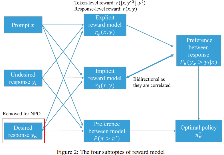 奖励模型的子主题包括:1. 显式奖励模型与隐式奖励模型;2. 逐点奖励模型与偏好模型;3. 响应层面的奖励与 token 层面的奖励;4. 负偏好优化。
