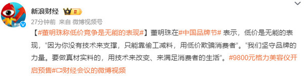 董明珠称低价竞争是无能的表现 这是在内涵哪家友商?