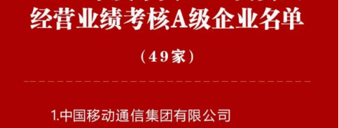 据了解,共有49家公司荣登2023年度中央企业负责人经营业绩考核A级企业名单,值得一提的是,中国移动通信集团有限公司、中国电信集团有限公司、中国联合网络通信集团有限公司均上榜。