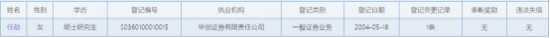 根据中国证券业协会信息显示,她登记在华创证券的时间是2004年5月,算下来至今已经有20年了,资历算是比较深的。在华创证券,她曾任公司计划财务部总经理。