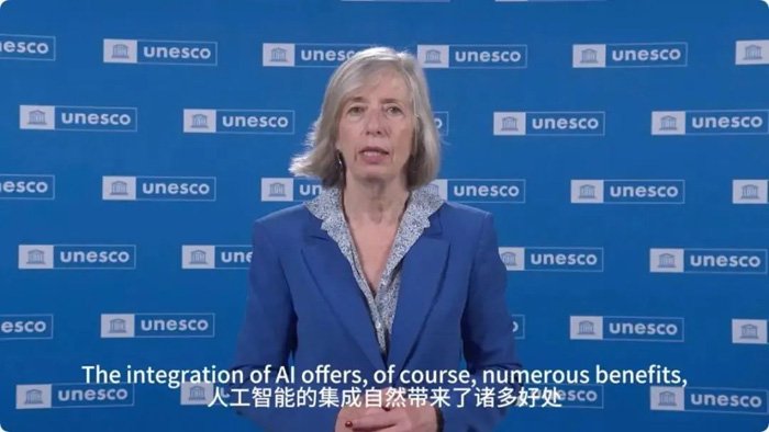 联合国教科文组织教育助理总干事斯蒂法尼亚·贾尼尼发表视频致辞。她表示,人工智能对高等教育产生了深远影响。一方面,人工智能有助于促进个性化的学习体验,增强包容性,以及推动协作学习模式。另一方面,高等教育机构也必须正视并解决人工智能的边界问题。她呼吁面对生成式人工智能的兴起,全球教育界必须采取以人为本的方法,确保人工智能的使用符合道德标准。