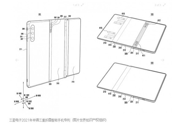 据报道,早在2021年,三星便向韩国和美国专利机构申请了三折叠屏手机相关专利。这款手机在折叠时可向内折叠两次,而不是呈“Z”形。到目前为止,其并未作为量产机型发布。韩媒表示,三星已将其产品方向转向卷曲屏手机,可以通过卷起显示屏来使用。