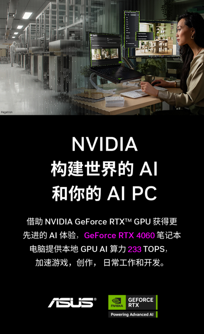 可见,正是因为有了 NVIDIA GeForce RTX™ 和 Studio ,你可以搞定每个截稿日,并出色的完成每个项目。ProArt 创16 2024 AI专业创作本至高搭载GeForce RTX 4070笔记本电脑GPU,该系列 GPU 由更高效的 NVIDIA Ada Lovelace 架构提供动力支持,借助 AI 驱动的 DLSS 3 可实现性能质的飞跃。同时,得益于全景光线追踪技术加持,缔造栩栩如生的虚拟世界,一些高负载创作应用也能流畅运行。