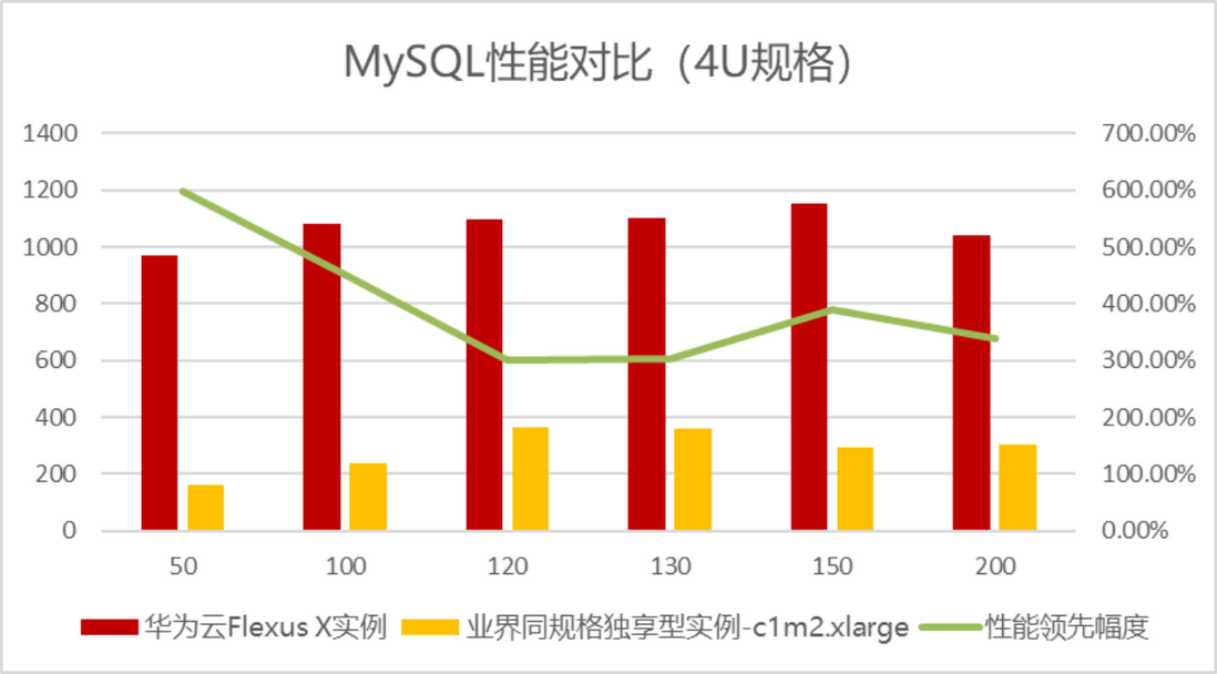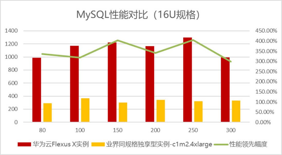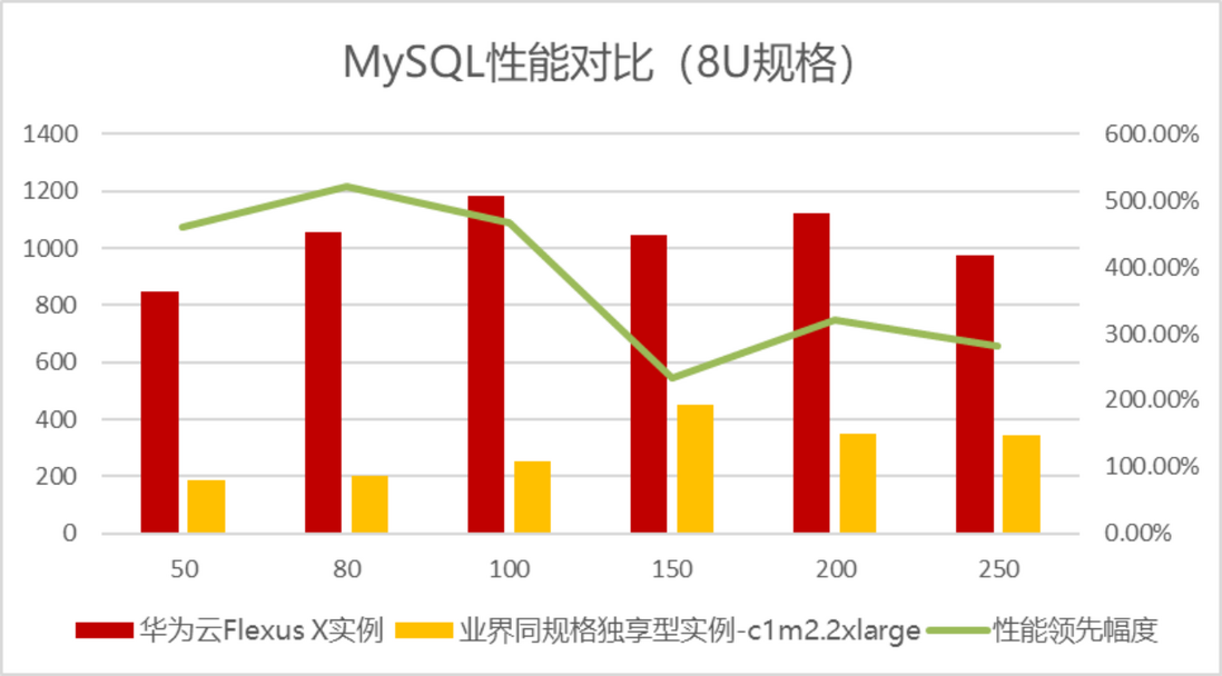 可以看到在评测中,华为Flexus X实例的MySQL性能评测得分数据最高接近业界独享型实例的6倍之多,这就使得同样配置下华为Flexus X实例可以承载更多的数据读写业务诉求,这无疑可以大大降低企业的用云成本。