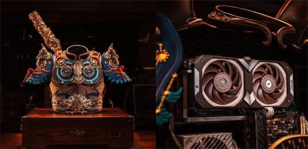 特别是胸甲部分的设计,打开时正好露出显卡的两个风扇,既美观又实用,完美地将游戏的文化符号与现代科技结合。