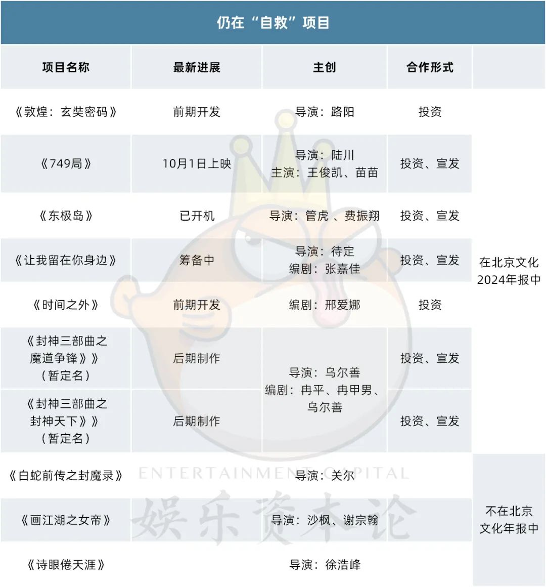 受到影响的远不止《封神》。《749局》在北京文化的年报中年年出现,却从一开始计划的2021年发行,变为了遥遥无期的“待定”。