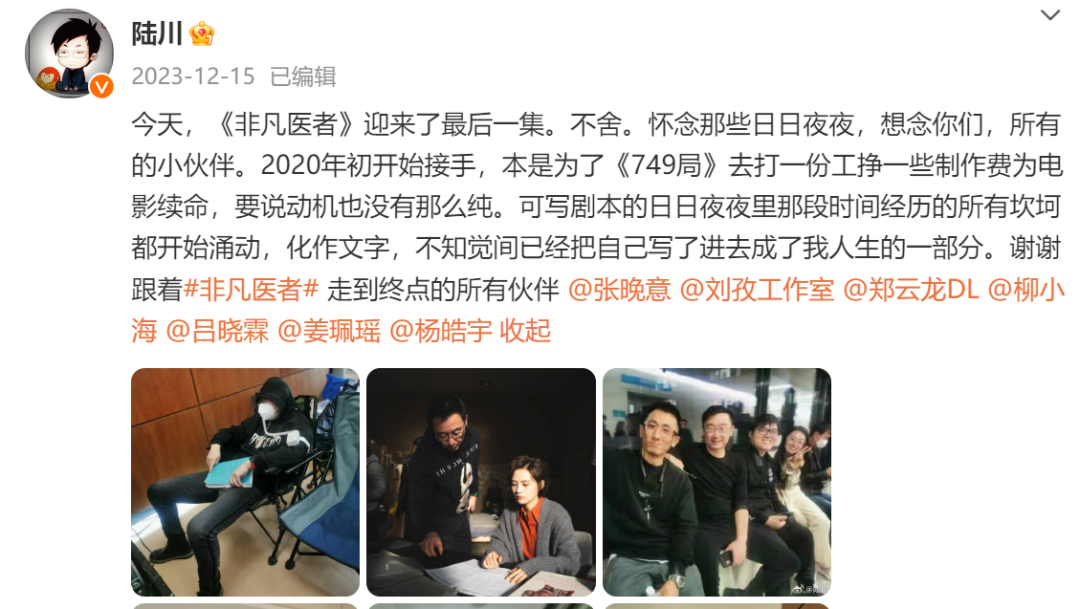 干的这么多“副业”,陆川称之为“打工”,一切都是为了《749局》。