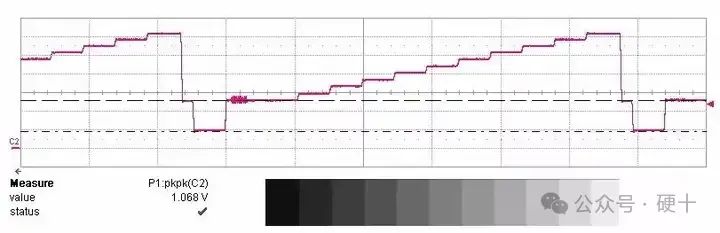 阶梯波信号也常被称为“灰阶”,用于测试“亮度非线性失真”,从图像上可以看到有从黑到白共11个不同的亮度,对应到信号波形上有11个不同的电平,以U0 表示黑电平,U1~U10表示后面的各阶梯电平,△U1~△U10 分别为各阶梯电平差,即:△U1=U1-U0、△U2=U2-U1以此列推,计算公式: