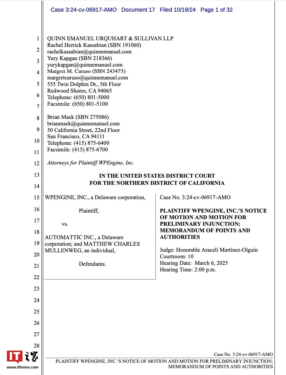 据了解,WP Engine希望该公司访问权能够恢复到2024年9月20日之前的现状。他们请求法院发布初步禁令,以恢复并维持被告上述错误行为发生前的现状,而不需要担保措施来确保恢复原状对被告不会产生负面影响。这些保护还应扩展到其附属公司、合作伙伴、员工、用户和客户。