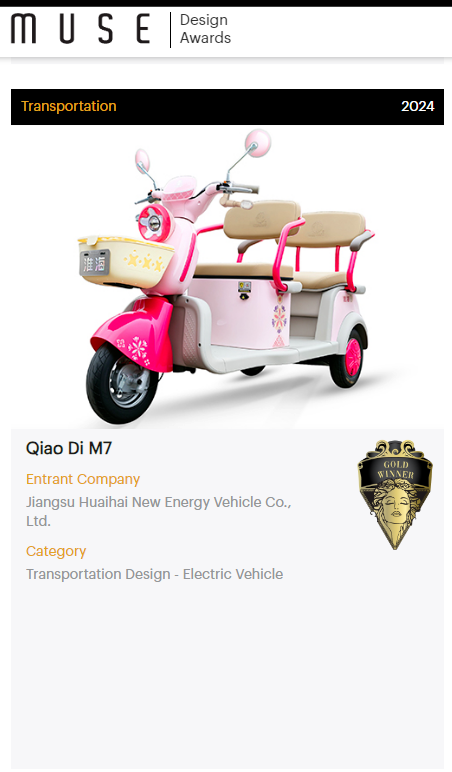 近日,享誉全球的美国缪斯设计奖(MUSE Design Awards)公布了2024年度评选结果,淮海旗下休闲车产品“巧迪M7”凭借其卓越的创新设计与精湛的工艺水准一举摘得了“2024美国Muse设计金奖”!