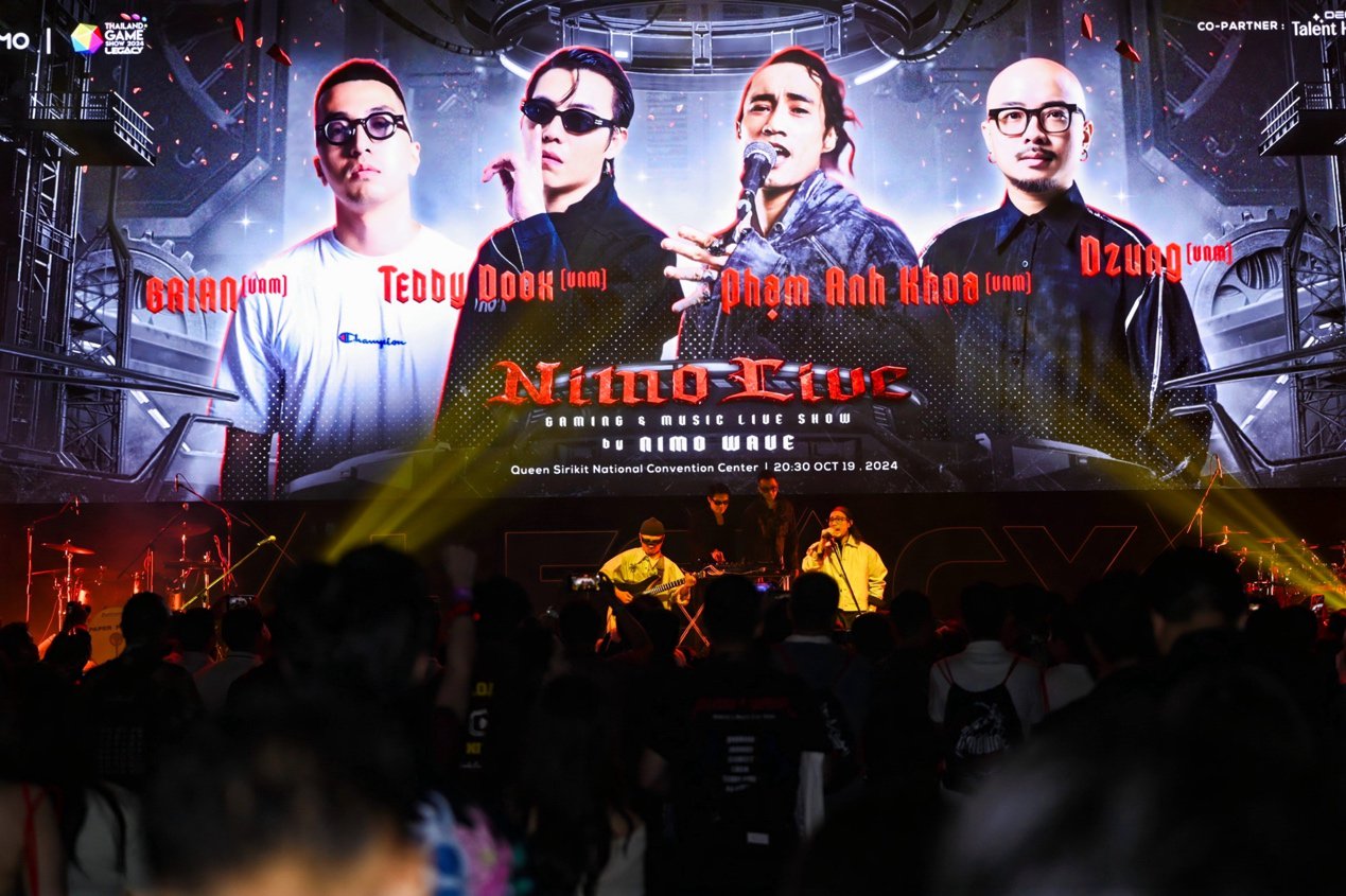 在NIMO WAVE LIVE SHOW活动当晚,知名泰国歌手MILLI、IRONBOY、泰国当红乐队PAPER PLANES、Sisweet等艺人组合,来自巴西的流行乐歌手吴映香Lúcia,和来自越南的OEGTalent House旗下的乐队主唱Phạm Anh Khoa、吉他手Dzung、音乐制作人兼百大DJ Teddy Doox与知名DJ Brian为观众奉上了《暗区突围》《金铲铲之战》《PUBG》《英雄联盟》等热门游戏的歌曲,动人心弦的旋律将现场游戏迷的热情点燃,带来一场酣畅淋漓的视听盛宴。