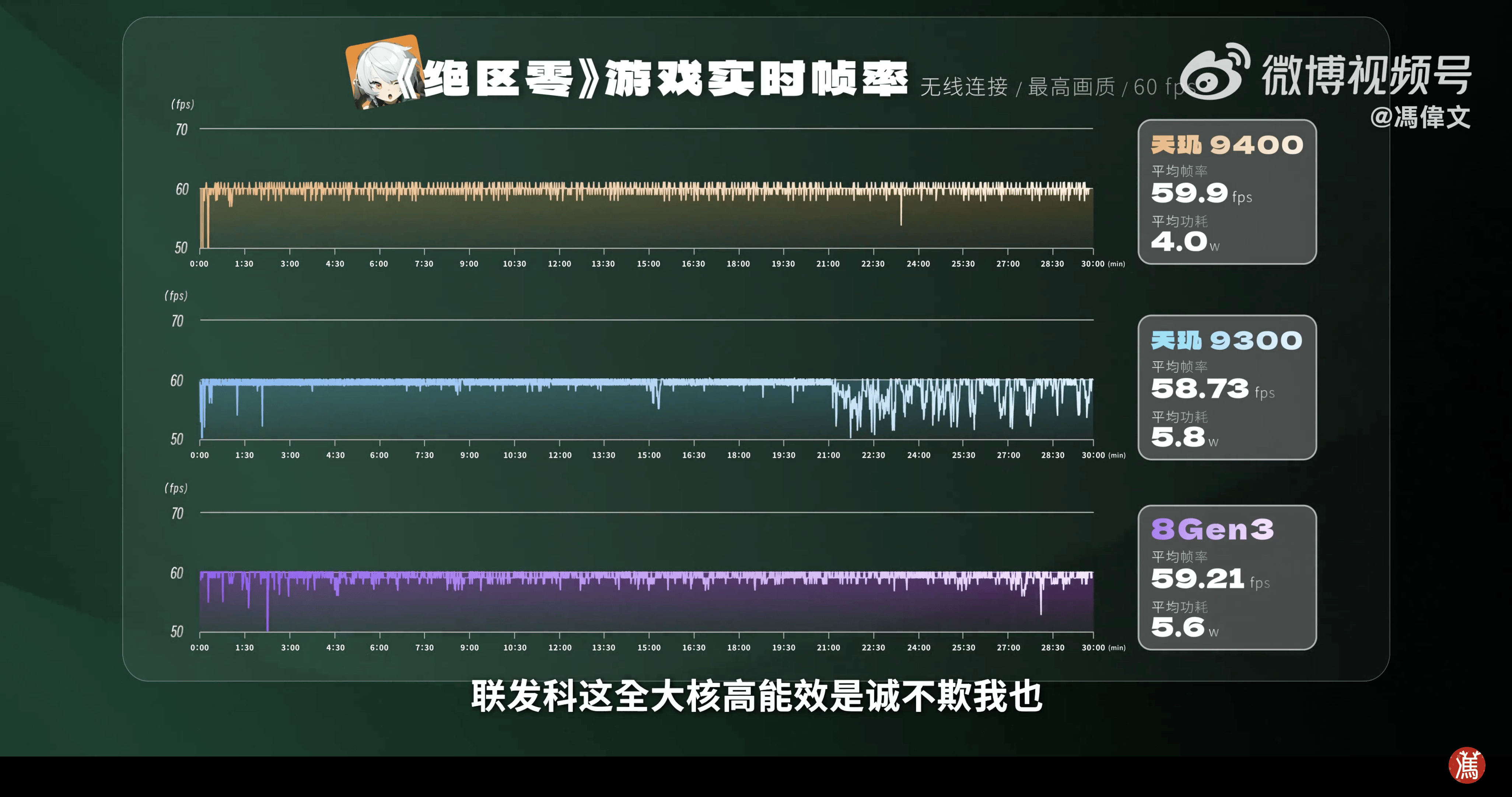 随着联发科全大核旗舰芯片的发布,手机游戏进入到后满帧时代,且拿捏3A已经成为旗舰芯片的必修课。强悍的GPU性能和能效让天玑9400在目前热门的3A手游中纵横驰骋,在知名数码媒体冯伟文的实测中,天玑9400无论是在《原神》还是在最近火热的《绝区零》中都“畅通无阻”,帧率一条线,功耗一路降,不仅帧率更高更稳定,功耗都降低了1W以上。