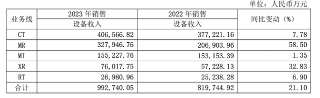 资料来源:Wind这里不妨看一下联影医疗近两年的设备销售情况,不难发现,卖得最多的其实是很传统的CT、X射线,分子影像设备MI是极少的,一年也就卖一百多台的样子,不及传统CT、XR(X射线成像)的十分之一,不过由于价格高,贡献的销售收入还不错。