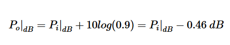 这意味着输出功率比入射功率低0.46dB。换句话说,信号的增益为-0.46dB,或者等效地,损耗为+0.46dB。这种功率损耗被称为“失配损耗”,因为它只是源于阻抗失配。失配损耗参数告诉我们通过提供完美的阻抗匹配可以获得多大的增益改善。在上述示例中,可获得的增益改善为0.46dB。基于上述讨论,由ML表示的失配损耗由以下方程给出: