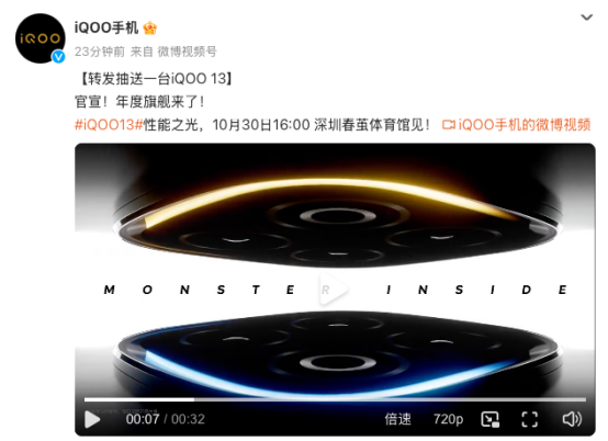 【天极网手机频道】10月22日,@iQOO官方正式宣布,其最新数字旗舰产品iQOO 13将于10月30日举行新品发布会。同时,官方也大方放出iQOO13的外观视频。从官方视频中,我们可以窥见iQOO 13在继承前代产品精髓的基础上,于设计与质感上实现了全面飞跃。